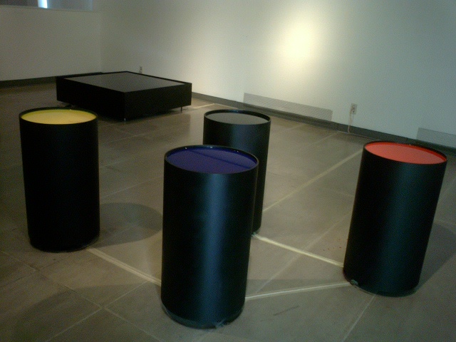そのうち「音響装置自体が音響を発生する作品」は、鉄で作られた長方形の函が4つ組み合わされている(写真上)。