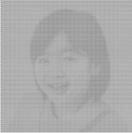 近くでみるとただの黒い小さな円が規則的に並んでいるだけだが、少し引いてみると、人物が浮かび上がってくる。