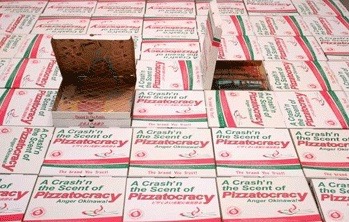 『Furious Pizza Box』は、2004年宜野湾市にある沖縄国際大学構内に、米軍のヘリコプターが墜落する事故が起きた際、宜野湾市長も、沖縄国際大学の学長も、沖縄県警さえも、米軍によって事故現場への立ち入りを禁じられたにもかかわらず、現場入りしている米軍兵士のために注文されたピザを届けにきた配達スタッフは現場内に招き入られたことが、沖縄県民の怒りを買った、というニューヨークタイムスの記事に端を発している。
