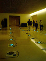 宮島達男本人から作品のコンセプトなど説明されたあと、参加市民はカウンターガジェットのスピード調節に入る。