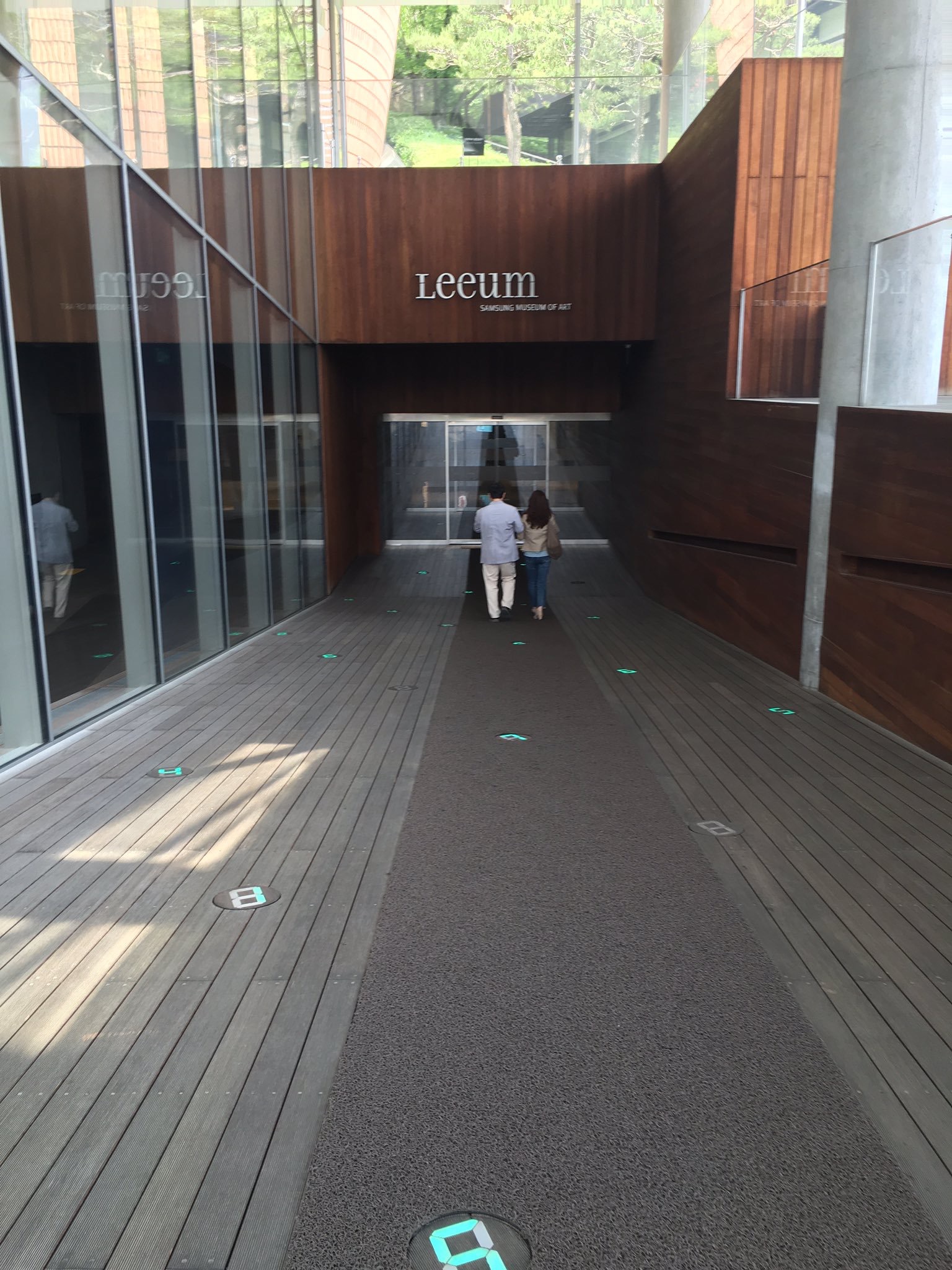 そのリウムに、宮島達男の新作「Trandcend Section(境界を越えて)」が、内外2ヵ所にある、美術館へのアプローチに永久設置された。
