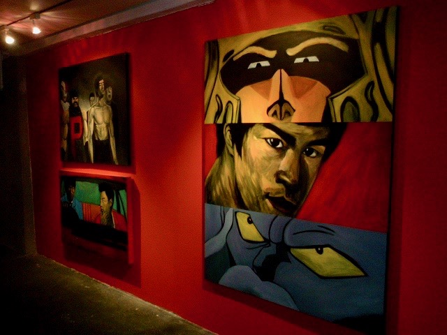 現実ではあり得ないブルース・リーと他のヒーローの共演や、アニメの悪役とブルース・リーの対峙など、正しい力をもつブルース・リーにかかわる妄想はとどまることを知らない(アニメのキャラクターをアクリルで描いても、結局セル画的になってしまうところもおもしろい)。