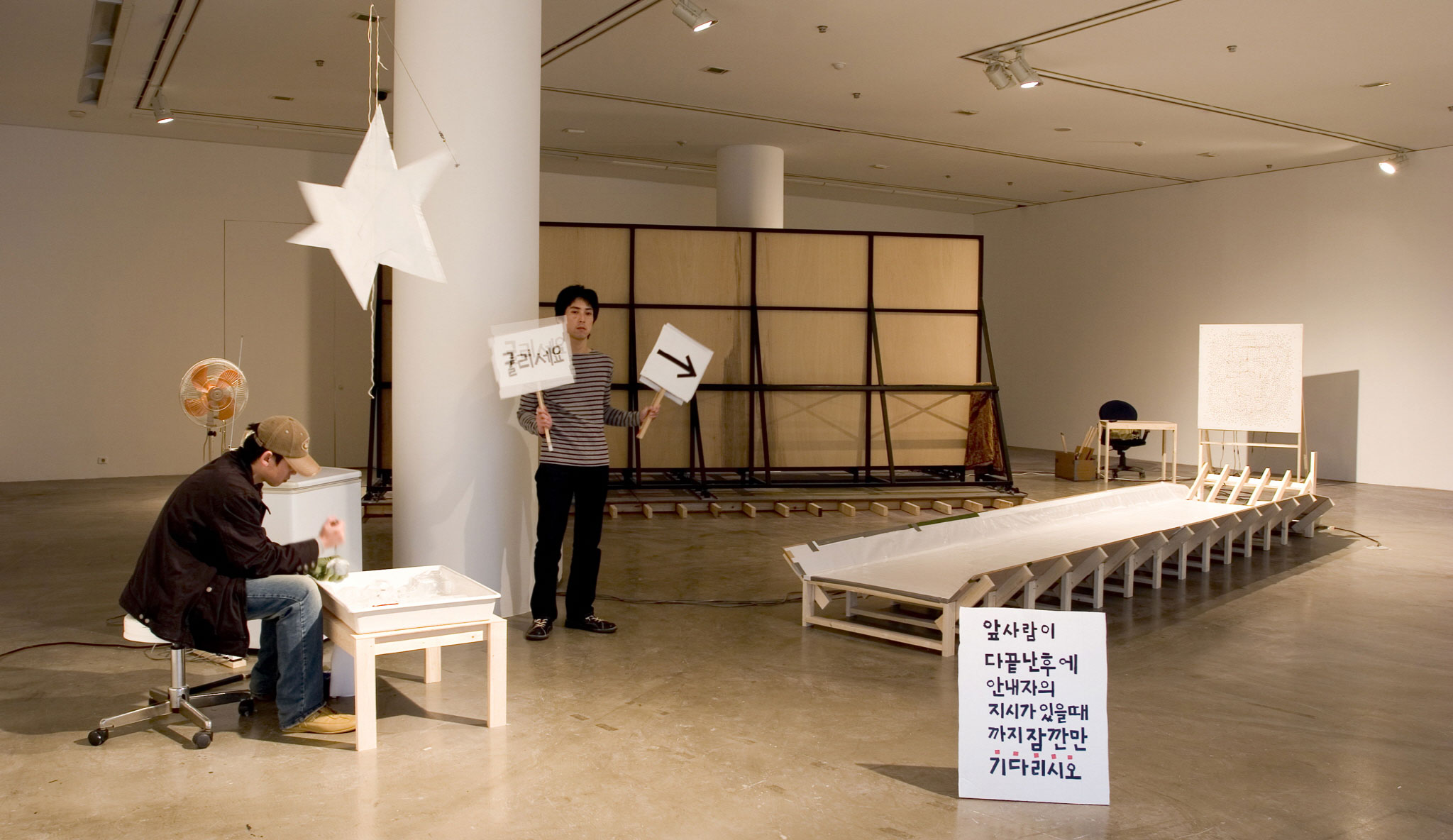 あとはその男性の出す看板にしたがって観客は進むことになる。