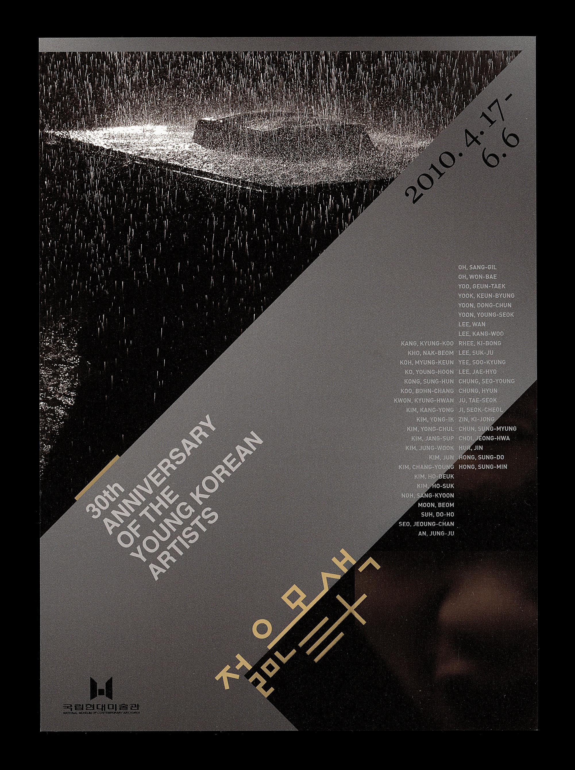 カン・ギョング(강경구)、ク・ボンチャン(구봉창)、クォン・ギョンファン(권경환)、コ・ナンボム(고낙범)、コ・ミョングン(고명근)、コ・ヨンフン(고영훈)、コン・ソンフン(공성훈)、キム・ガンヨン(김강용)、キム・ヨンチョル(김용철)、キム・ヨンイク(김용익、1981年の第1回に選定)、キム・ジャンソプ(김장섭)、キム・ジョンウク(김정욱)、キム・ジュン(김준)、キム・ホドゥク(김호득)、キム・ホソク(김호석)、キム・チャンヨン(김창영)、ノ・サンギュン(노상균)、ムン・ボム(문범)、ソ・ドホ(서도호)、ソ・ジョンチャン(서정찬)、アン・ジョンジュ(안정주)、イ・ガンウ(이강우)、イ・ギボン(이기봉)、イ・スギョン(이수경)、イ・ソッジュ(이석주)、イ・ワン(이왕)、イ・ジェヒョ(이재효)、オ・サンギル(오상길)、オ・ウォンベ(오원배)、ユ・グンテク(유근택)、ユク・クンビョン(육근병)、ユン・ヨンソク(윤영석)、ユン・ドンチョン(윤동천)、チョン・ヒョン(정현)、チョン・ソヨン(정서영)、ジュ・テソク(주태석)、ジ・ソクチョル(지석철)、ジン・ギジョン(진기종、2006年と本展では一番最近に選定されている)、チョン・ソンミョン(천성명)、ホ・ジン(허진)、ホン・ソンド(홍성도)、ホン・ソンミン(홍성민)、チェ・ジョンファ(최정화)ら、すでに評価が定着している作家、さらに『若い模索』からさらに跳躍し、国際的評価も固まっている作家らが並ぶ。