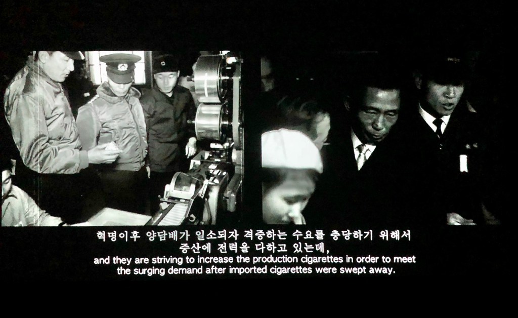 本作はその出来事と、1946年の京城専売局清州煙草工場設立から、1987年の韓国煙草専売公社(KT&G)への改編を経て2004年の完全閉鎖、2015年の清州工芸ビエンナーレへの再活用、そして現代に至るまでの煙草製造廠の歴史とを、当時工場で働いていた人を中心にインタビューする映像と当時の記録映像でまとめている……のだが、どうにもお役所っぽい雰囲気が抜けない。