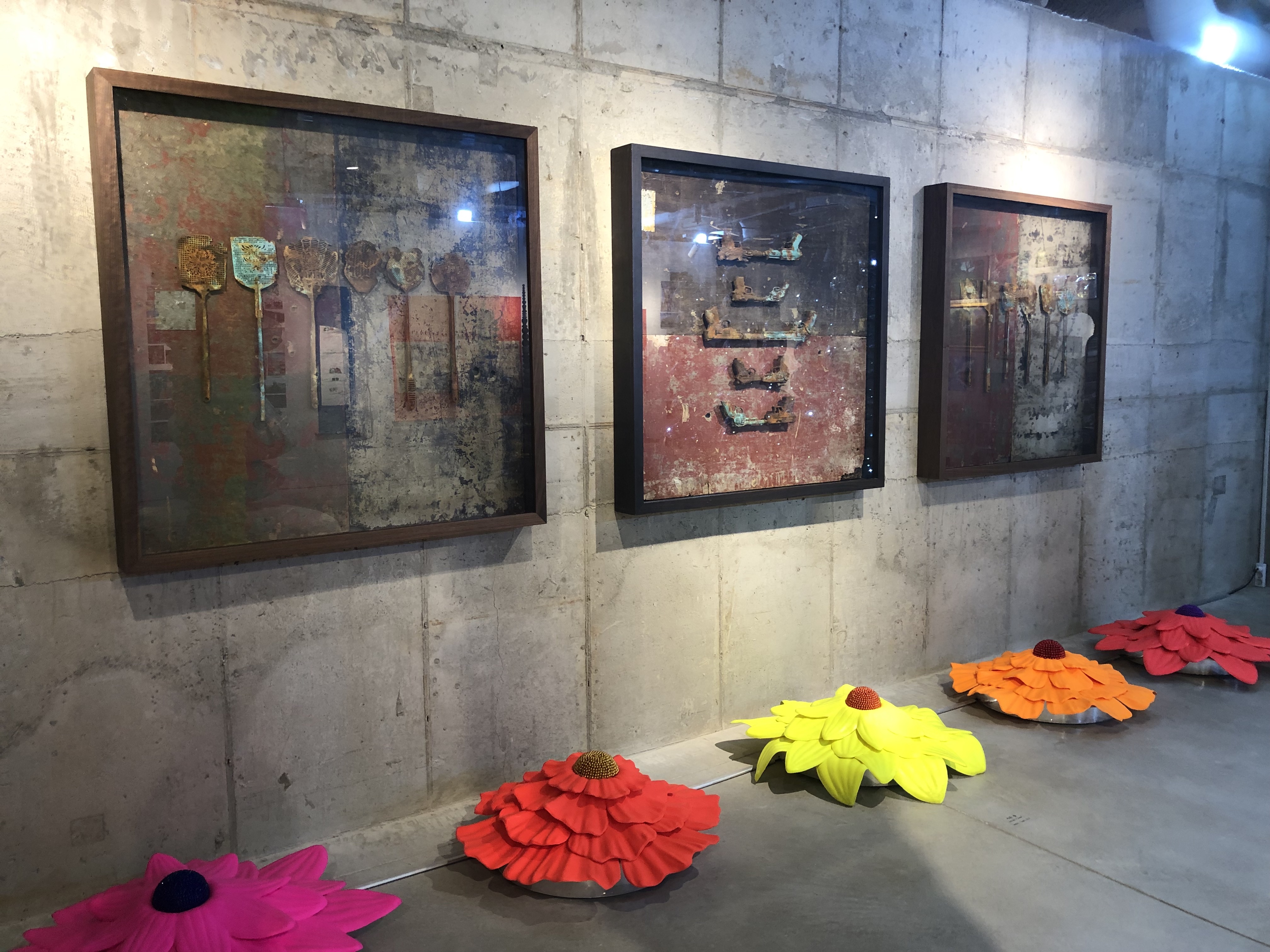 そこに文化振興政策として本アートスペースが作られたわけだが、美術館ほどには広くない。新築の割にわざと天井やコンクリート壁をむき出しにした、最近よくあるリノベーションっぽいつくりの、平面スペースである。