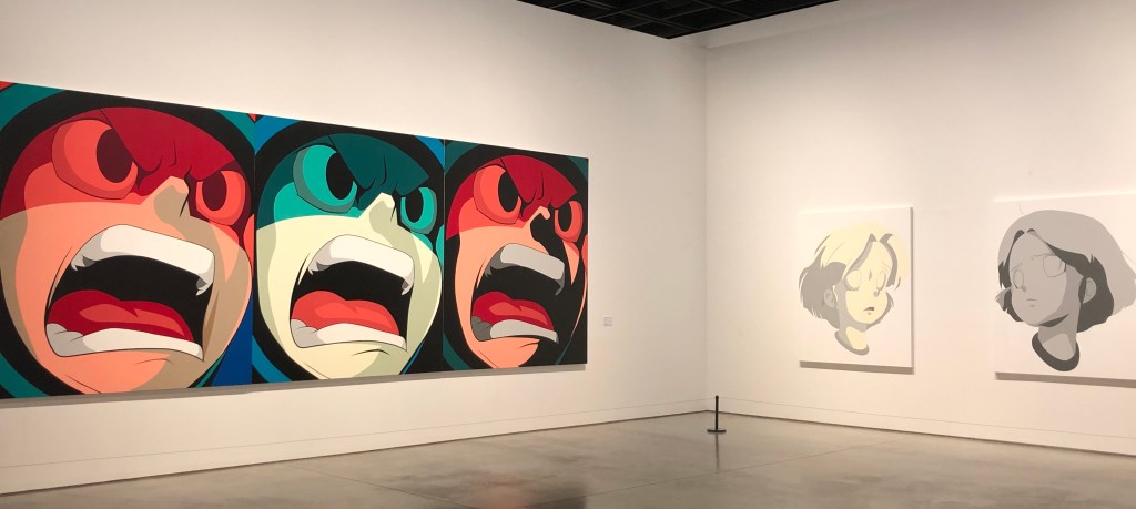 筆者が韓国で育ったわけではないせいか不明だが、イラストのようなファンシーが絵柄にルイ・ヴィトンのモノグラムが重ねてあるだけ、アニメセルのようにアクリル絵具でべったり塗ったポップなイラストにミッキーマウスのシルエットが重ねてあるだけ、絵本のようなキャラクターで物語世界を作っただけ、というように見える一部の作品の、どこに新規性があるのかはわからなかった。