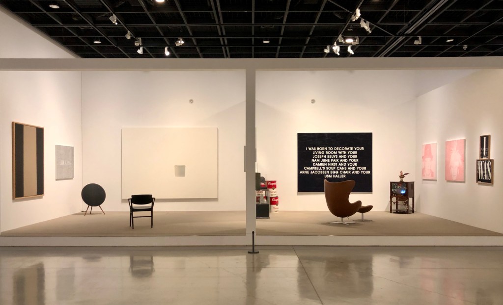“I WAS BORN TO DECORATE YOUR LIVING ROOM WITH YOUR JOSEPH BEUYS AND YOUR NAM JUNE PAIK AND YOUR DAMIEN HIRST AND YOUR CAMBELL’S SOUP CANS AND YOUR ARNE JACOBSEN EGG CHAIR AND YOUR USM HALLER”