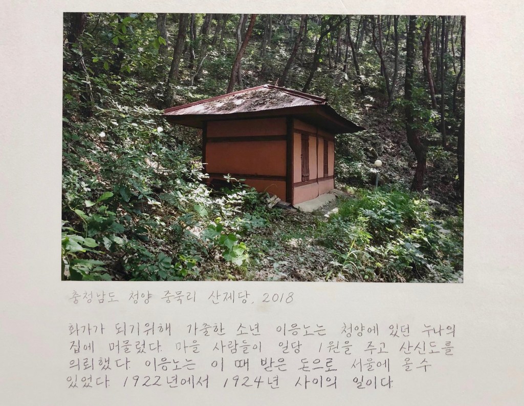 元〜明時代の水墨画と、それに付された『熱河日記』(乾隆帝70歳祝賀の赴京使に随行した実学家・思想家である朴趾源による中国訪問記)の一節、日本統治下における朝鮮の美術、その下に生まれたイ・ウンノについての記述へと続く壁が回廊のようになっており、キム・ボム(김범)の有名な美術品を雑に模した作品や、ここ現美ソウル館の前身・国軍機務司令部(機務司、国軍の情報機関)の内部を写したペク・スンウ(백승우)の写真(2011)など、総22点の資料と1点の油画作品で構成されている。