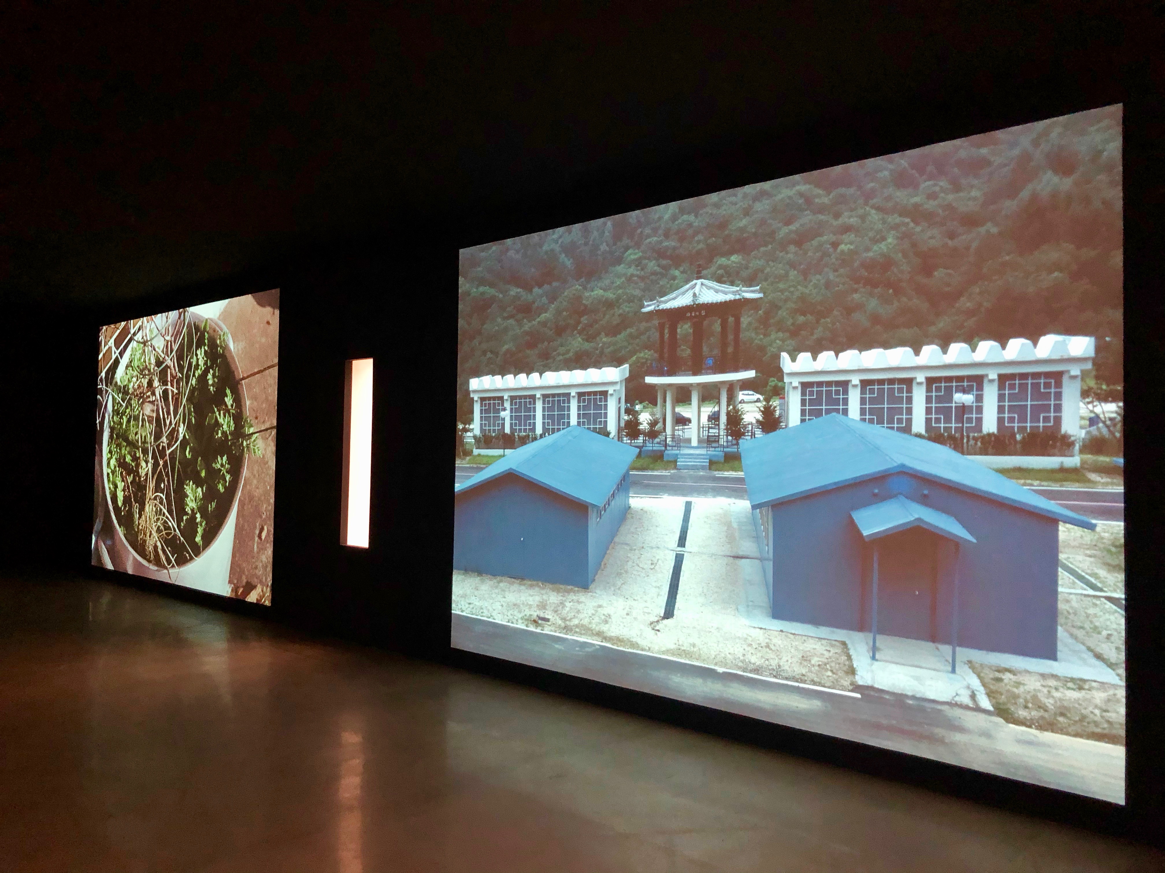 大きな映像ブース2つのうち、一方ではスライド作品『福島、オートラジオグラフィ』と『セット』が投射されており、日本と韓国が今も抱え続ける災難の一幕を見せてくれる。