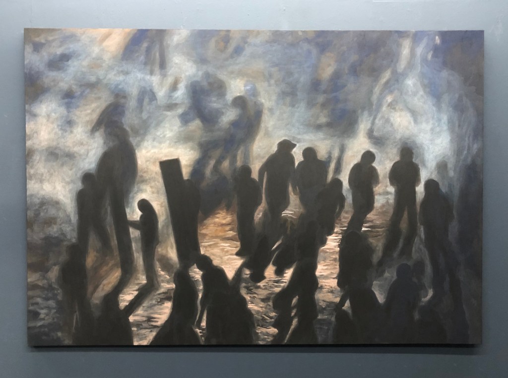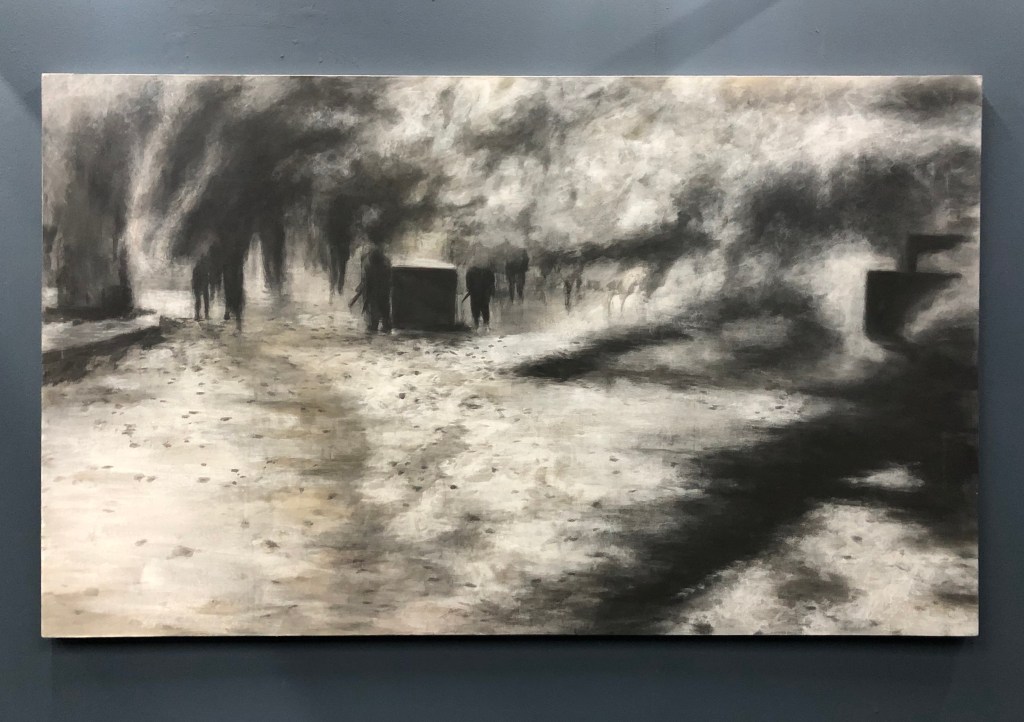 本展では、普段が暮らしていた場所が、戦災や環境の変化と思われる何か不可避で市民たちの力では抵抗し得ないものに巻き込まれ、破壊され、傷つき、日常を送ることができず、動揺あるいは無力化していく人々を、やや離れた視点から描いた作品が並ぶ。
