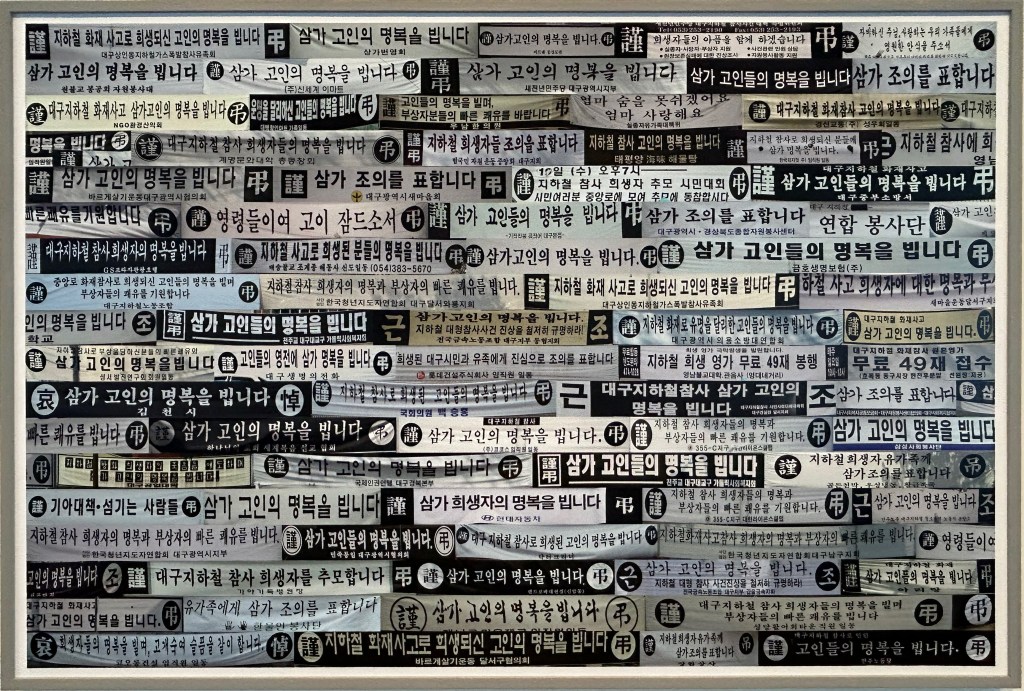 2003年に発生した大邱地下鉄放火事件後、市民たちにより大邱市内に掲示された弔意を示す横断幕をコラージュした作品。