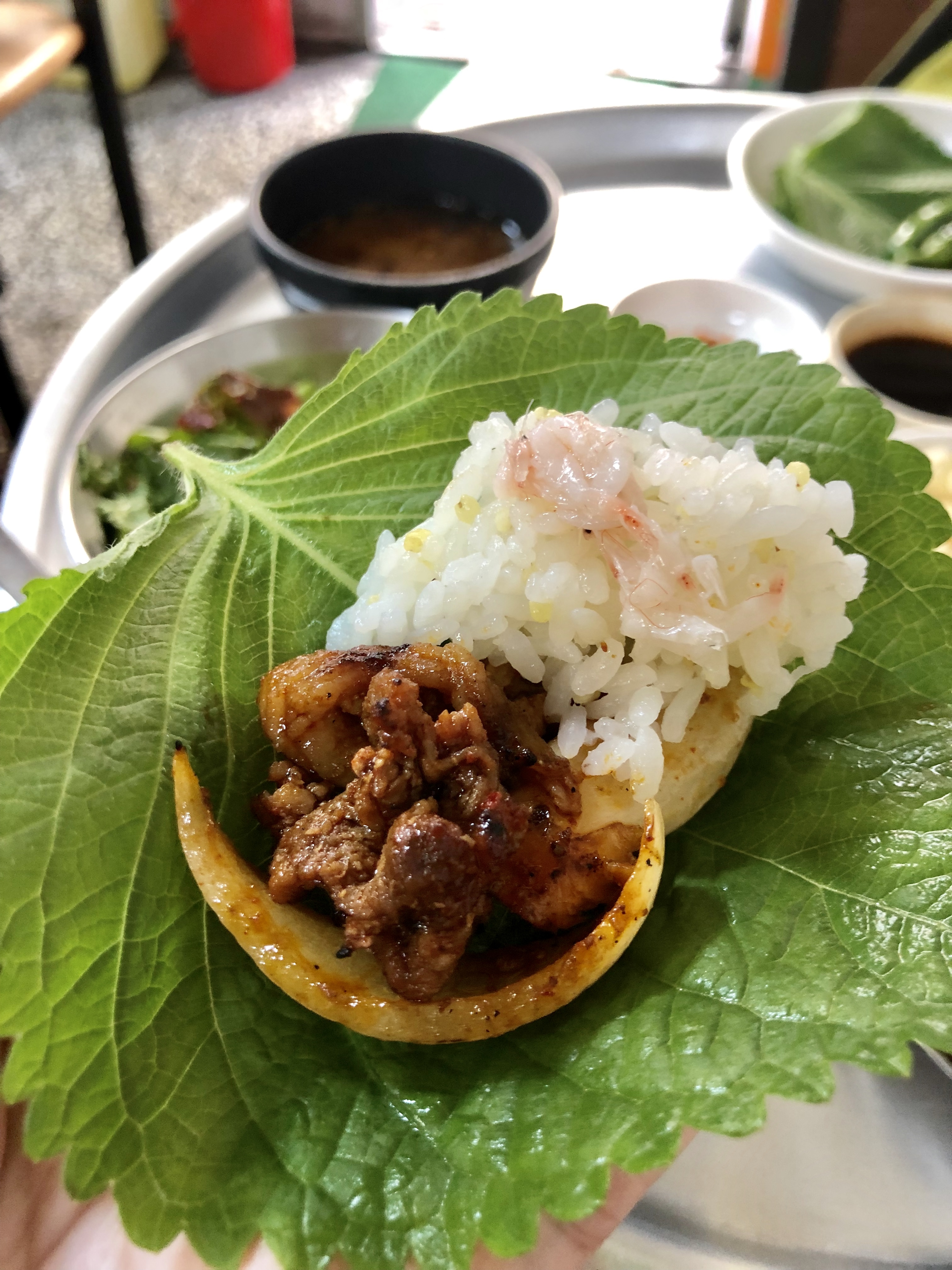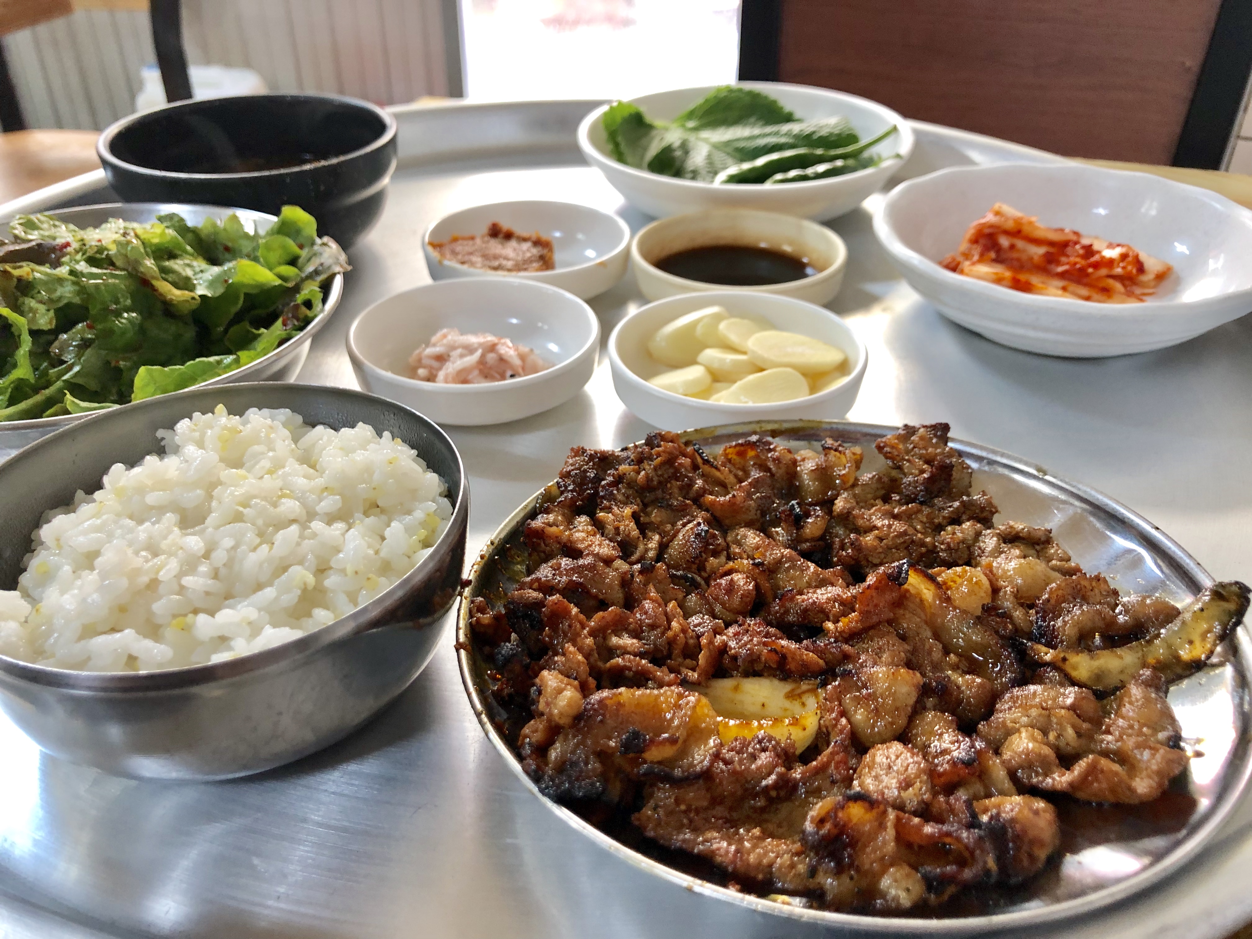 元祖プルコギは日本のすき焼きを踏襲したものだというから、あのタレで煮込んだみたいな甘辛いジュワジュワプルコギが本家本元なのだろうが、「プルコギ(火肉)を名乗るならこっちの方が名を表しているのでは?」という様相だ。