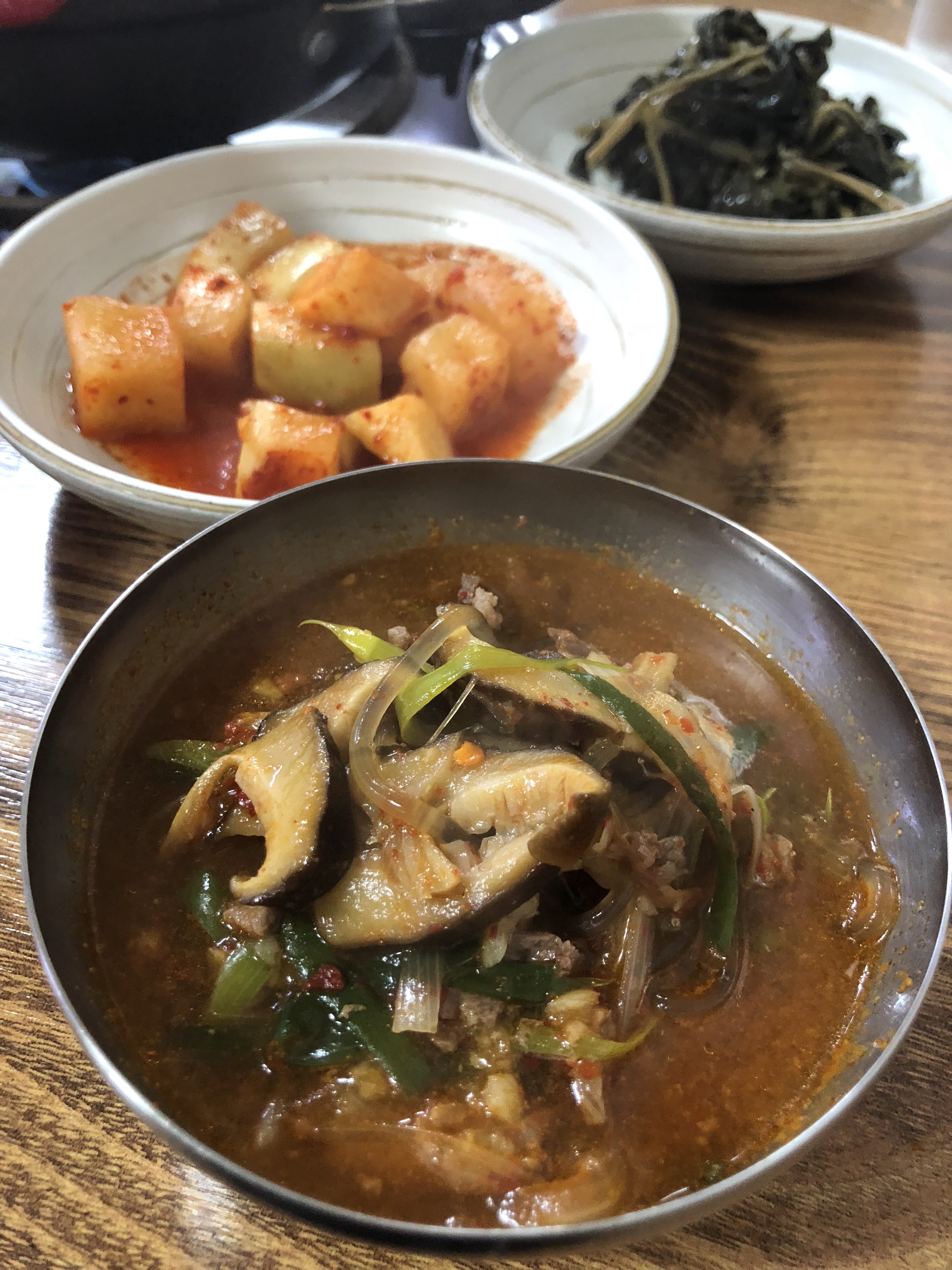 1人前なんと9,000ウォン、カットゥギ(角切り大根キムチ)とシレギ(干菜料理)が付いてくる。